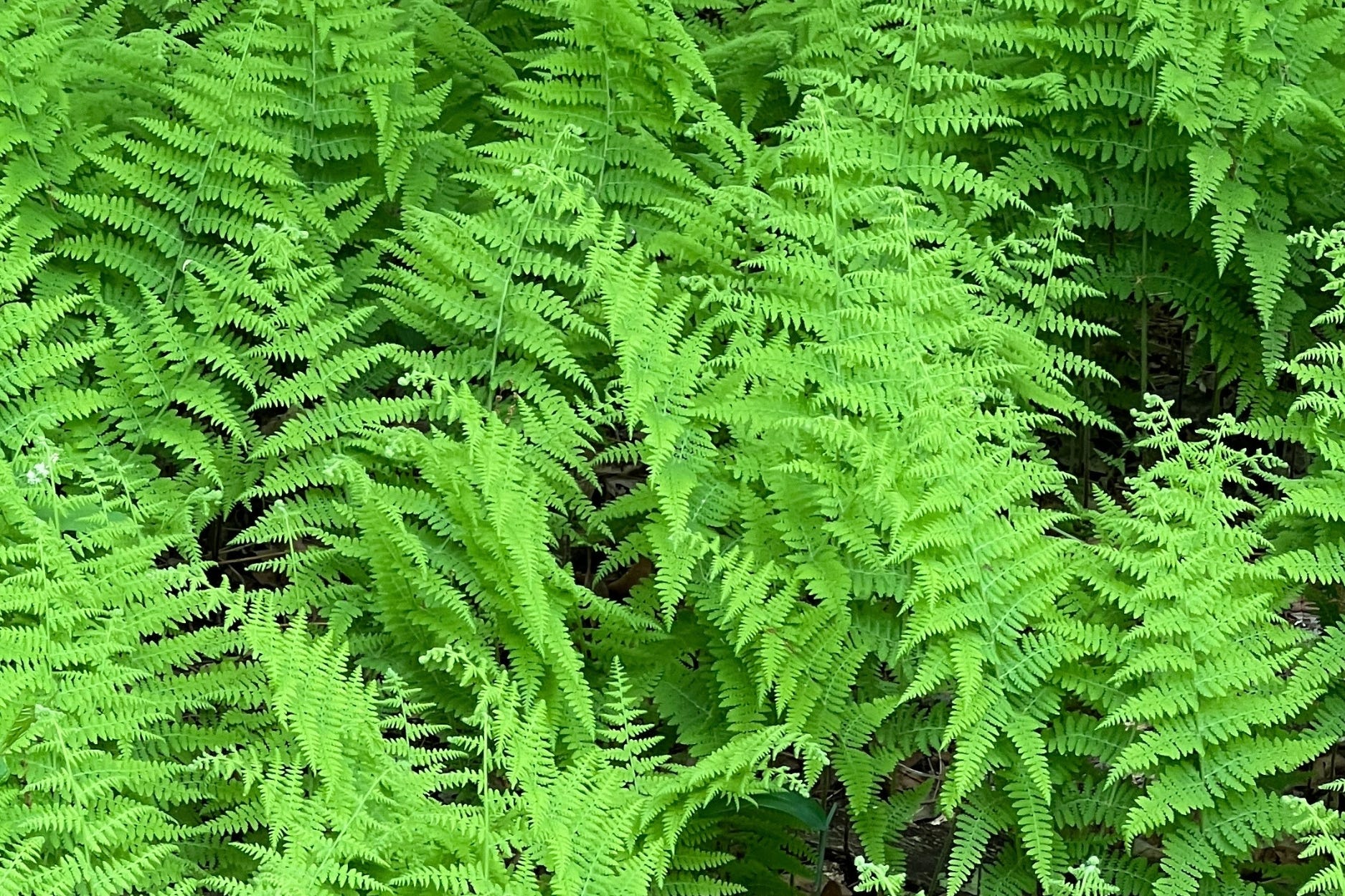 There's a stretch of trail dotted with ferns, with their unfurling, symmetrical patterned leaves. They catch my eye with their uncanny uniformity and structure. Each frond that emerges from a fern is a mirror image of the fern as a whole. This is what's known as self-similarity, where an object contains the same level of detail at multiple scales.